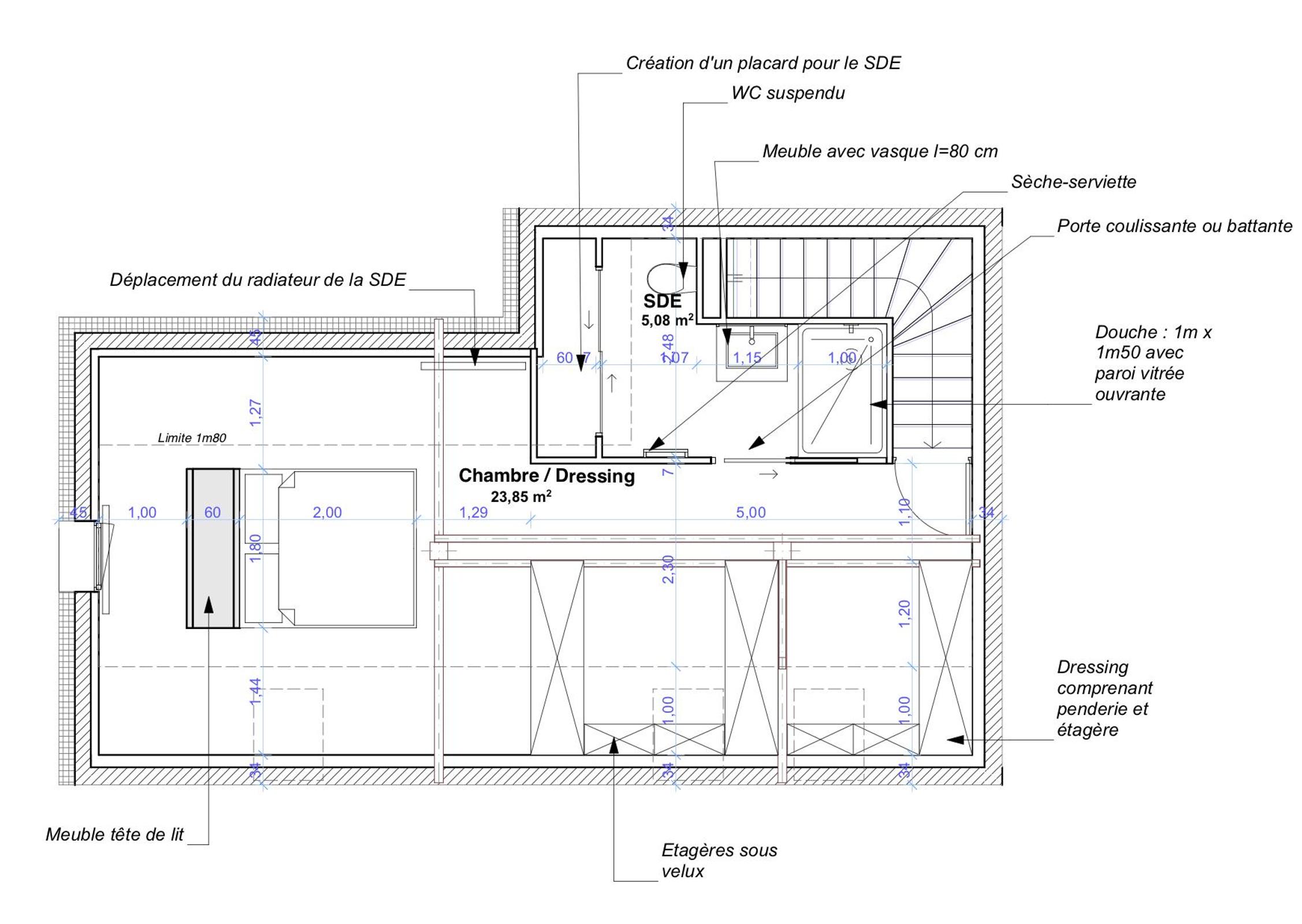 Le projet concerne l'amenagement d'une suite parentale dans une maison individuelle.