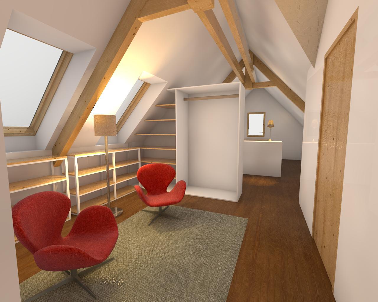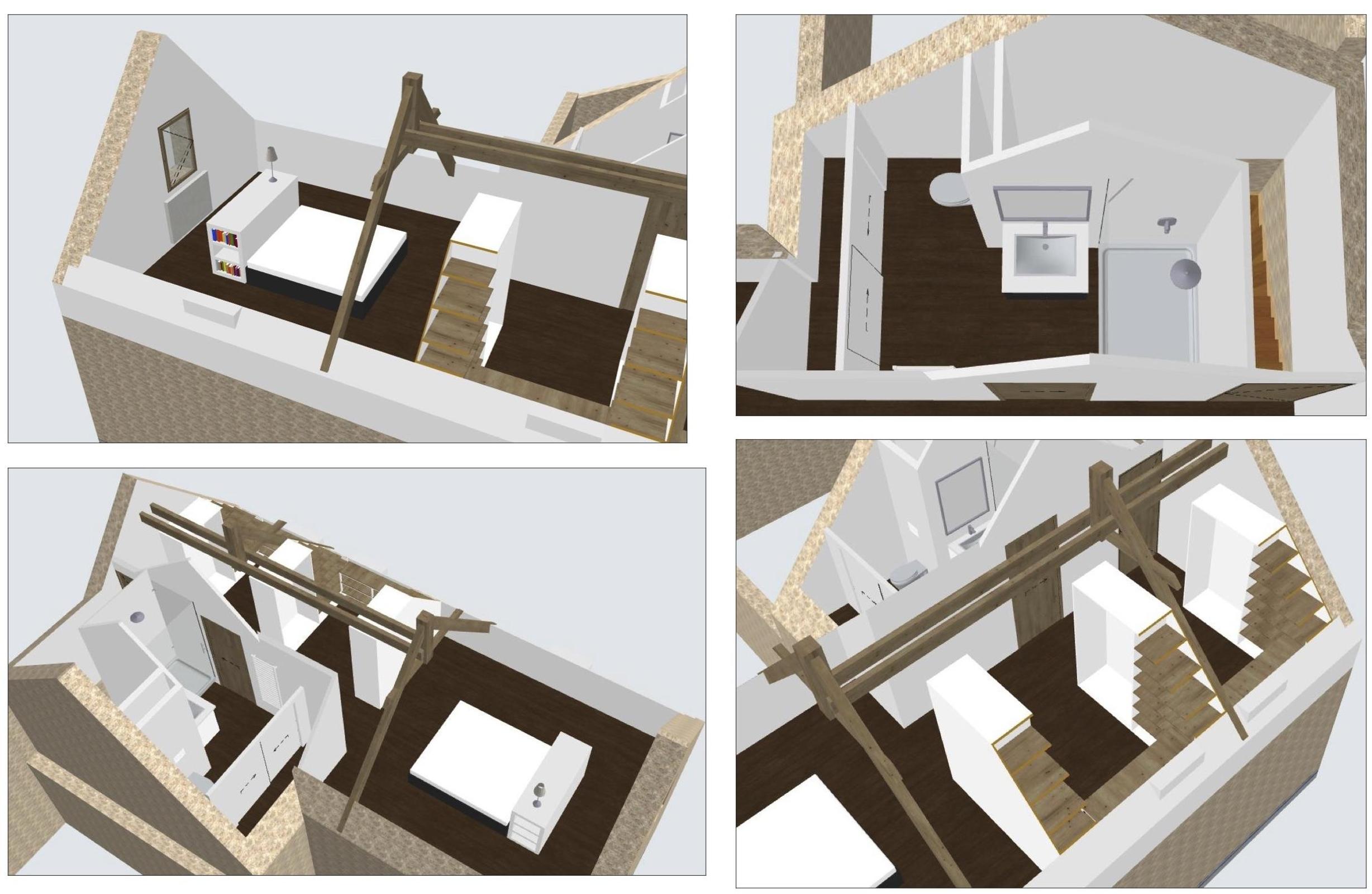 Suite à un revelé sur place, et après une analyse technique du projet, nous avons fait plusieurs proposiitons d'aménagement différentes à nos clients. Ces propositions comprenaient chacune, un plan et des vues du projet à l'état existant puis un plan projeté avec des vues axonométriques et une perspective d'ambiance.